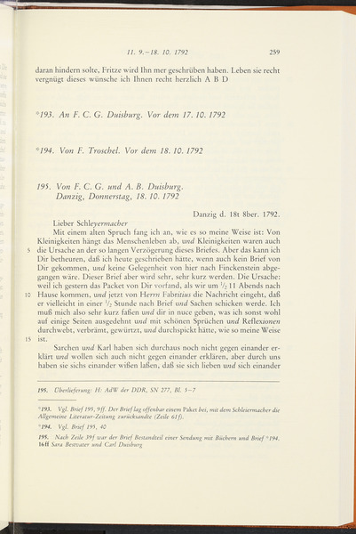 Ende November/Anfang Dezember 1792 · Place of Dispatch: Danzig (Gdańsk) · Place of Destination: Königsberg -