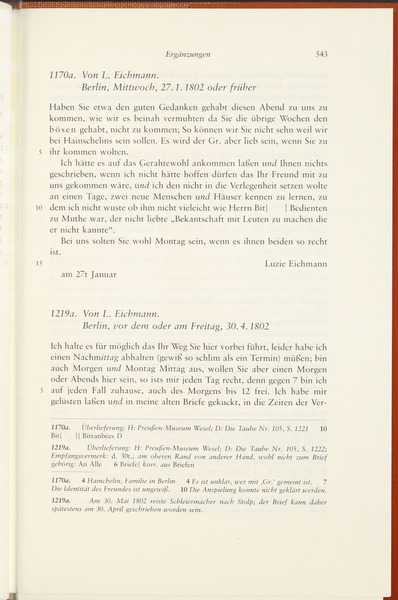 Ende Januar 1802 · Place of Dispatch: Jena · Place of Destination: Berlin -