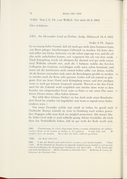 Alexander von Dohna to Friedrich Schleiermacher