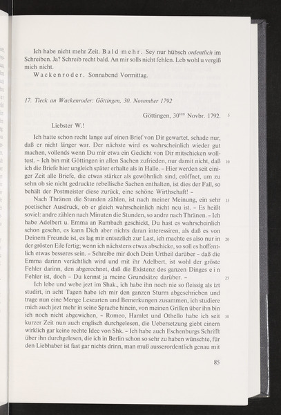Ludwig Tieck to Wilhelm Heinrich Wackenroder