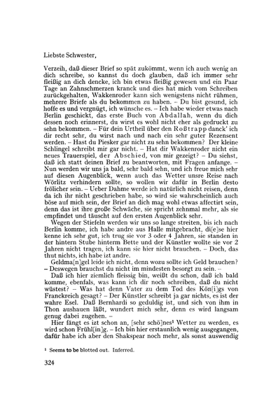 Wilhelm Heinrich Wackenroder to Ludwig Tieck