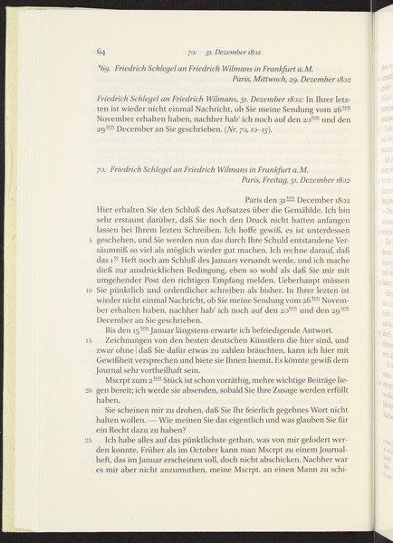 Friedrich Wilmans an Friedrich von Schlegel