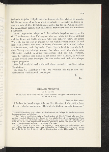 Friedrich Wilhelm Joseph von Schelling an Johann Wolfgang von Goethe