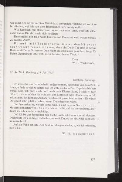 Wilhelm Heinrich Wackenroder to Ludwig Tieck