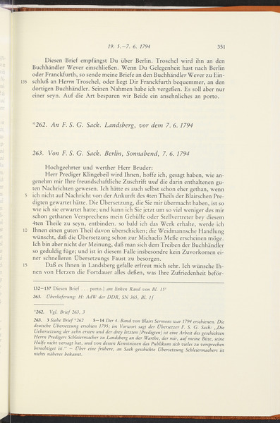 Friedrich Samuel Gottfried Sack to Friedrich Schleiermacher