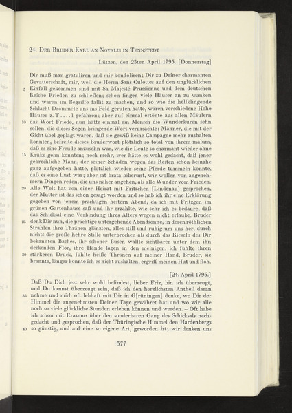 23. und 24. April 1795 · Place of Dispatch: Lützen · Place of Destination: Tennstedt -