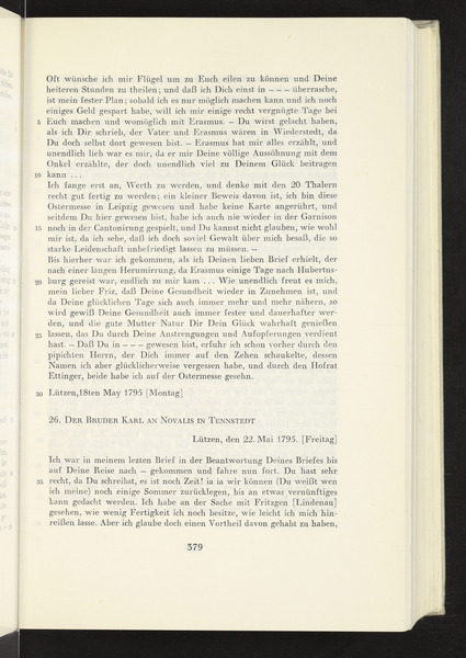 Freitag, 22. Mai 1795 · Place of Dispatch: Lützen · Place of Destination: Tennstedt -