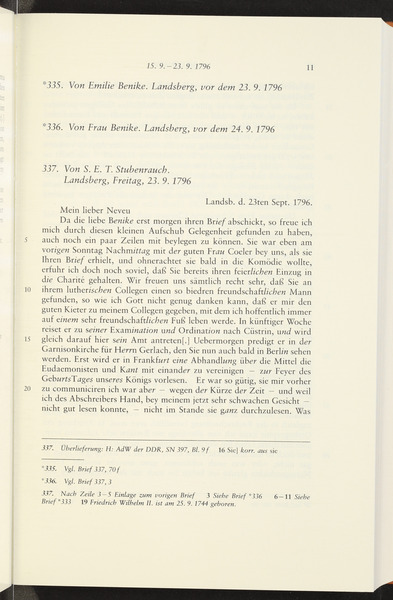 1. bis 2. September 1796 · Place of Dispatch: Landsberg (Warthe) · Place of Destination: Berlin -