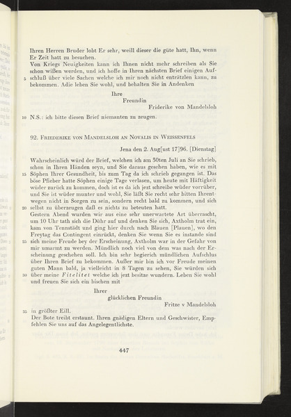 Sophie von Kühn, Friedericke von Mandelsloh to Novalis