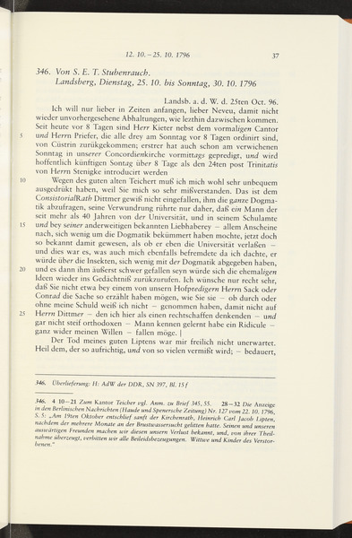 Samstag, 22. Oktober 1796 · Place of Dispatch: Jena · Place of Destination: Gotha -