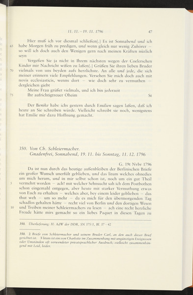 Donnerstag, 17. November 1796 · Place of Dispatch: Jena · Place of Destination: Leipzig -