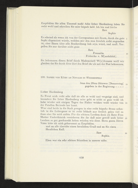 Friedericke von Mandelsloh, Sophie von Kühn to Novalis