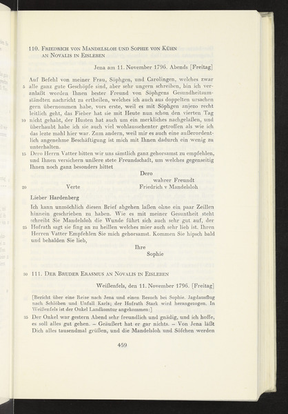 Freitag, 11. November 1796 · Place of Dispatch: Jena · Place of Destination: Eisleben -