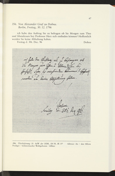 Alexander von Dohna to Friedrich Schleiermacher