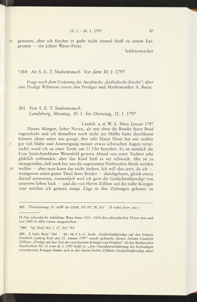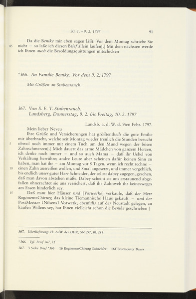 wohl im Januar 1797 · Place of Dispatch: Berlin · Place of Destination: Berlin -