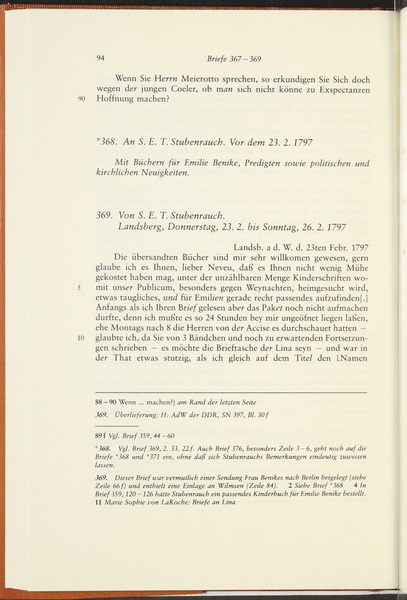 9. bis 10. Februar 1797 · Place of Dispatch: Landsberg (Warthe) · Place of Destination: Berlin -