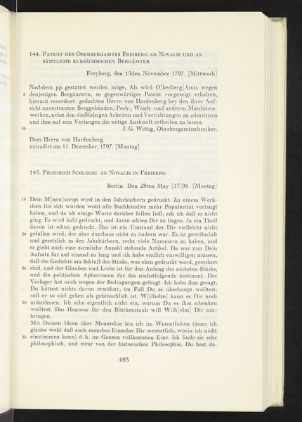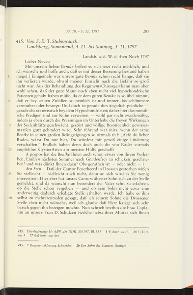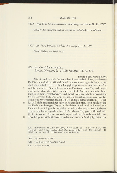 Ende November 1797 · Place of Dispatch: Berlin · Place of Destination: Berlin -
