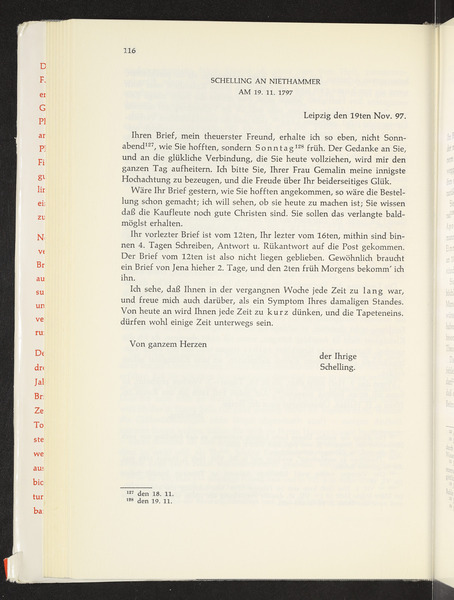 Donnerstag, 16. November 1797 · Place of Dispatch: Jena · Place of Destination: Leipzig -