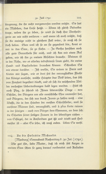 Samstag, 30. Juli 1791 · Absendeort: Marburg · Empfangsort: Göttingen -