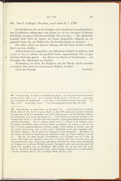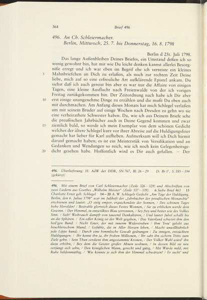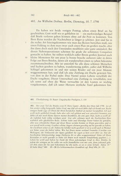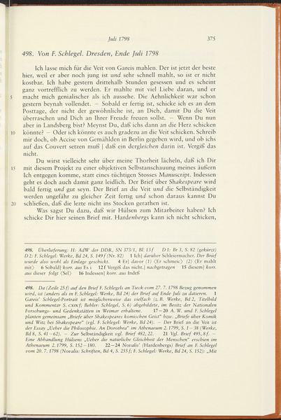 Ende Juli oder Anfang August 1798 · Place of Dispatch: Berlin · Place of Destination: Dresden -