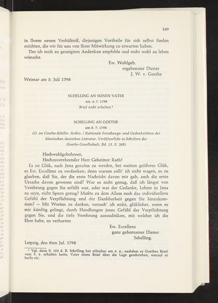 Donnerstag, 5. Juli 1798 · Place of Dispatch: Weimar · Place of Destination: Leipzig -