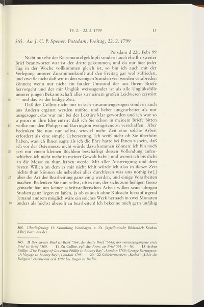 Anfang März 1799 · Place of Dispatch: Berlin · Place of Destination: Freiberg -