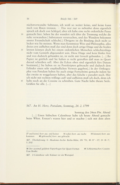 Montag, 25. Februar 1799 · Place of Dispatch: Berlin · Place of Destination: Jena -