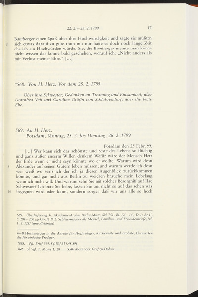 Anfang März 1799 · Place of Dispatch: Potsdam · Place of Destination: Berlin -
