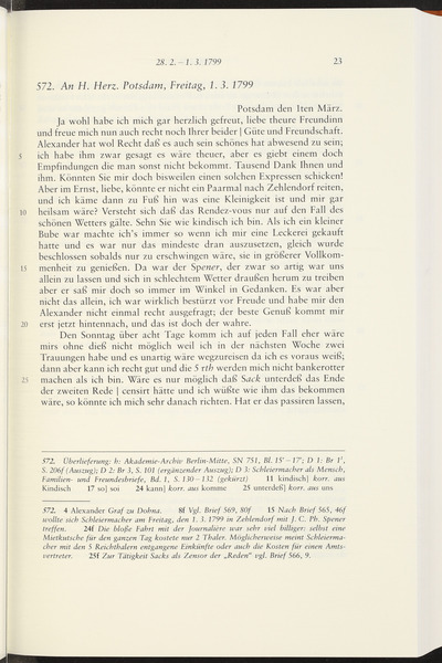 Samstag, 2. März 1799 · Place of Dispatch: Berlin · Place of Destination: Berlin -