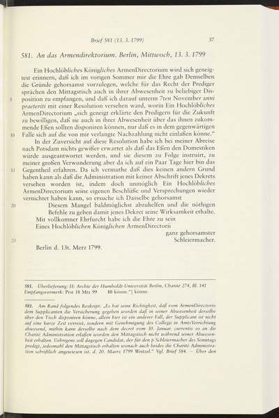 Mittwoch, 13. März 1799 · Place of Dispatch: Berlin · Place of Destination: Berlin