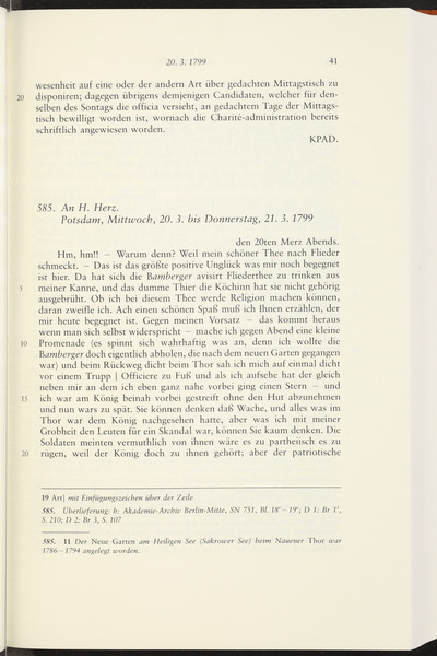 Donnerstag, 21. März 1799 · Place of Dispatch: Berlin · Place of Destination: Potsdam -