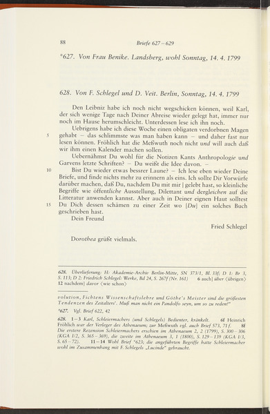 Friedrich von Schlegel, Dorothea von Schlegel to Friedrich Schleiermacher