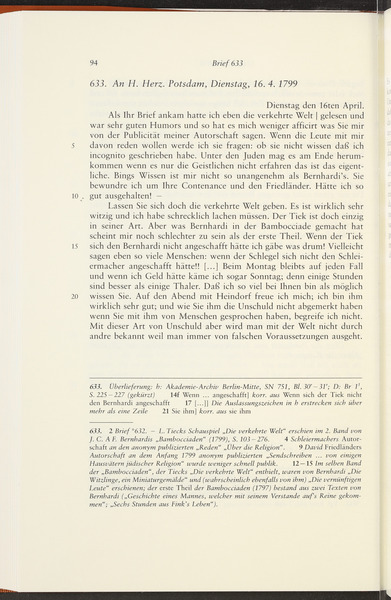 Dienstag, 16. April 1799 · Place of Dispatch: Berlin · Place of Destination: Berlin -