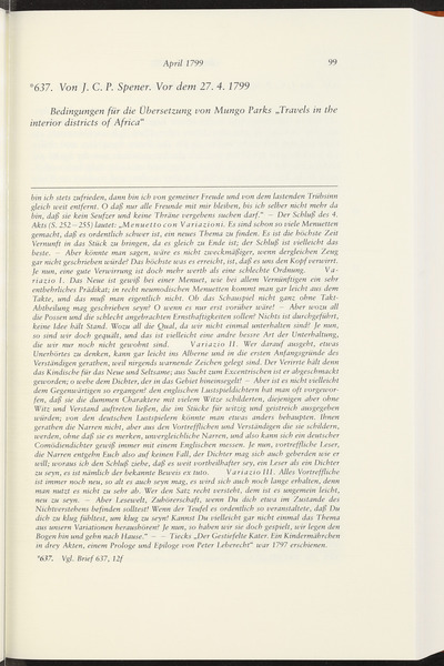 nach Mitte April 1799 · Place of Dispatch: Jena · Place of Destination: Berlin -