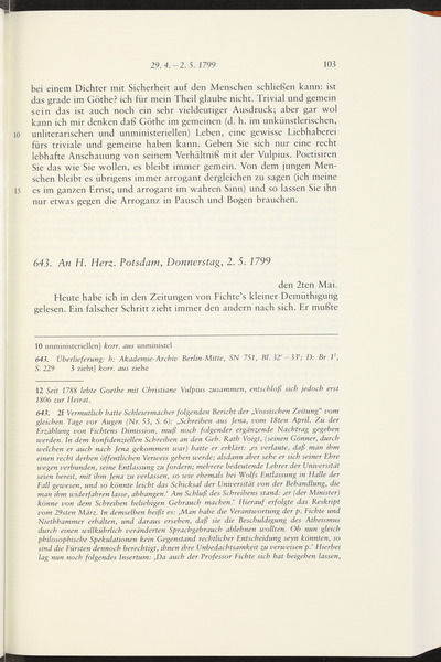 Mai oder Anfang Juni 1799 · Place of Dispatch: Berlin · Place of Destination: Jena -