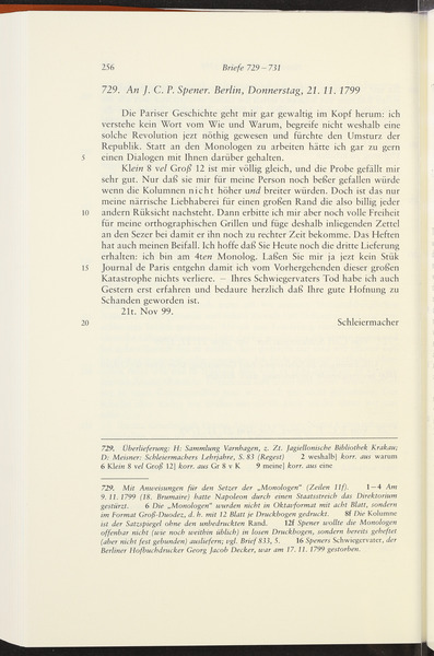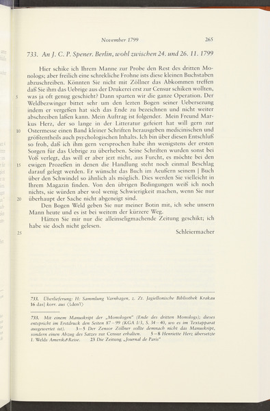 Mitte November 1799 · Place of Dispatch: Berlin · Place of Destination: Jena -