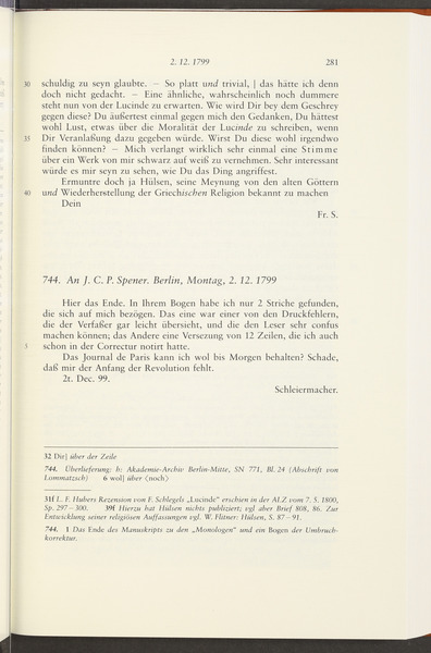 Anfang Dezember 1799 · Place of Dispatch: Berlin · Place of Destination: Jena -