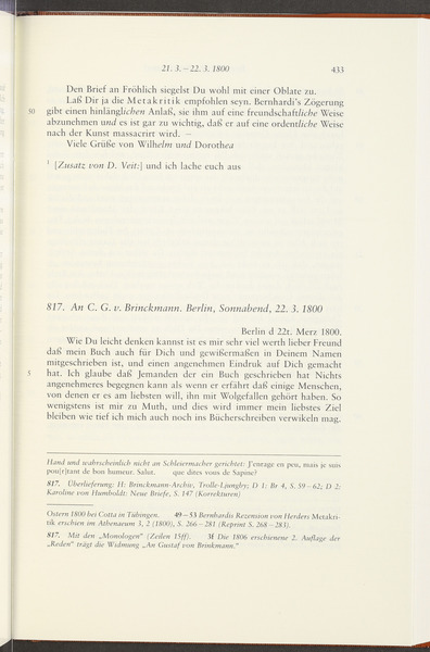 Friedrich von Schlegel, Dorothea von Schlegel to Friedrich Schleiermacher