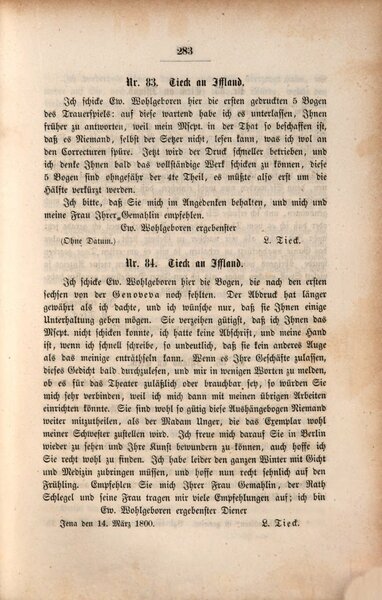 Ludwig Tieck, Amalie Tieck to Sophie Bernhardi
