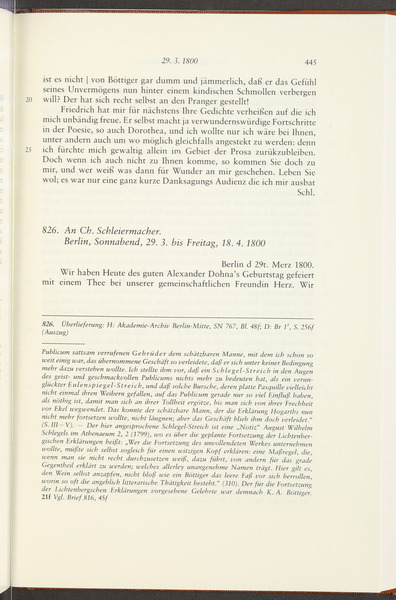 Samstag, 29. März 1800 · Absendeort: Berlin · Empfangsort: Jena -