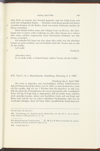 Anfang April 1800 · Absendeort: Berlin · Empfangsort: Jena -