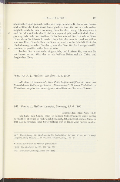 Samstag, 12. April 1800 · Absendeort: Berlin · Empfangsort: Jena -