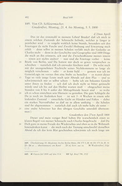 Montag, 21. April 1800 · Absendeort: Jena · Empfangsort: Berlin -