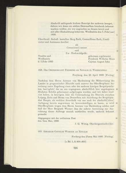 Samstag, 26. April 1800 · Absendeort: Freiberg · Empfangsort: Weißenfels -