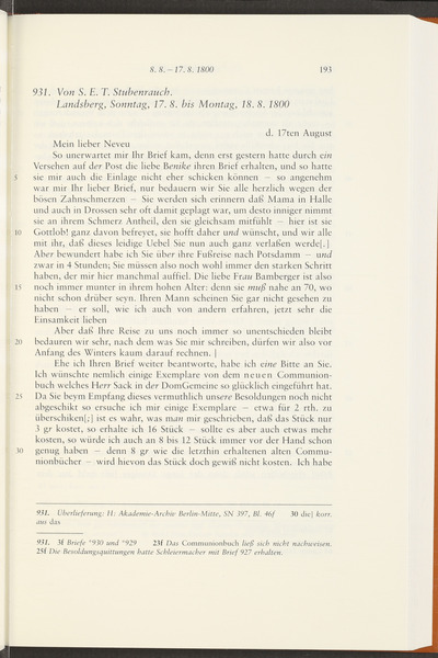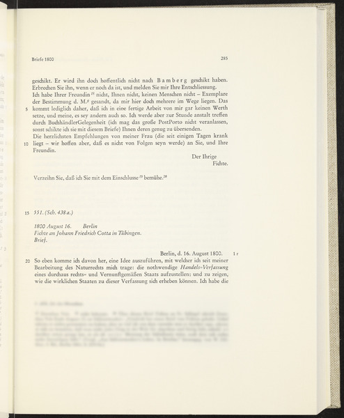 Samstag, 16. August 1800 · Absendeort: Berlin · Empfangsort: Tübingen -