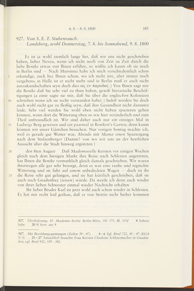 6. oder 7. August 1800 · Absendeort: Berlin · Empfangsort: Berlin -