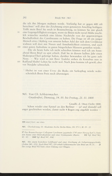 Anfang November 1800 · Place of Dispatch: Erlangen · Place of Destination: Berlin -