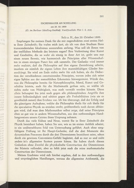 Carl A. Eschenmayer to Friedrich Wilhelm Joseph von Schelling