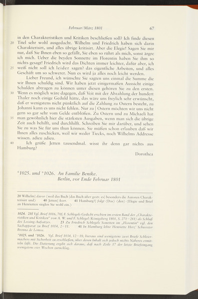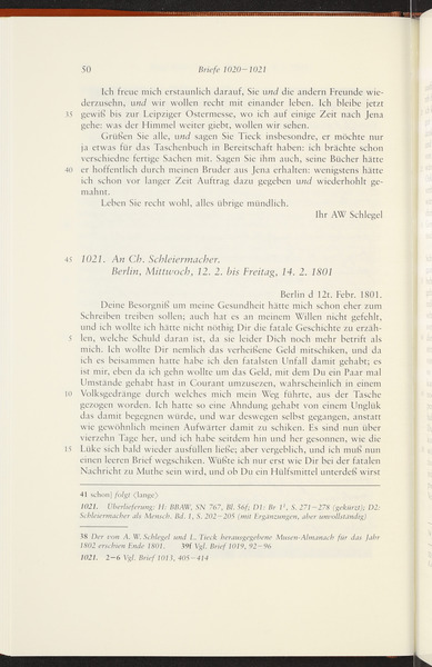 Anfang Februar 1801 · Place of Dispatch: Jena · Place of Destination: Berlin -