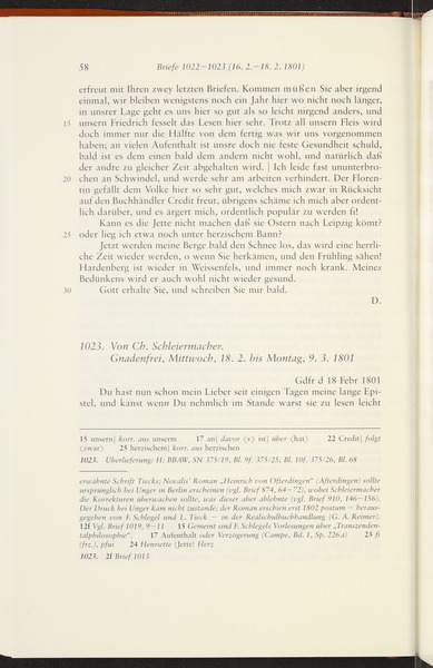 Ende Februar oder März 1801 · Place of Dispatch: Berlin · Place of Destination: Erlangen -